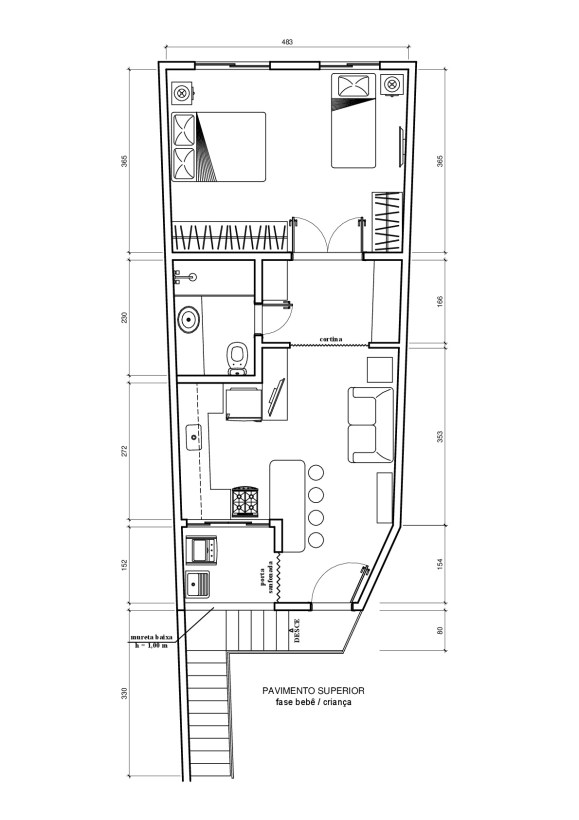 - Moradia para um casal e um filho ainda bem pequeno.